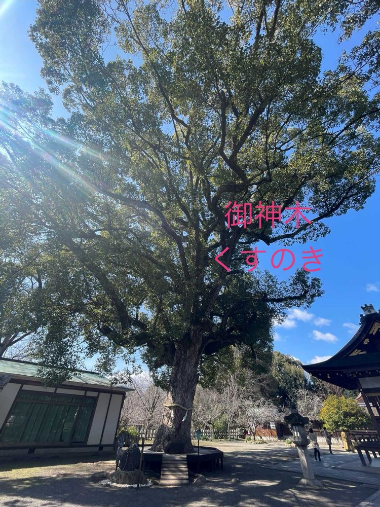 御神木の🌳楠に🌸桜の蕾もちゃんと📱✨