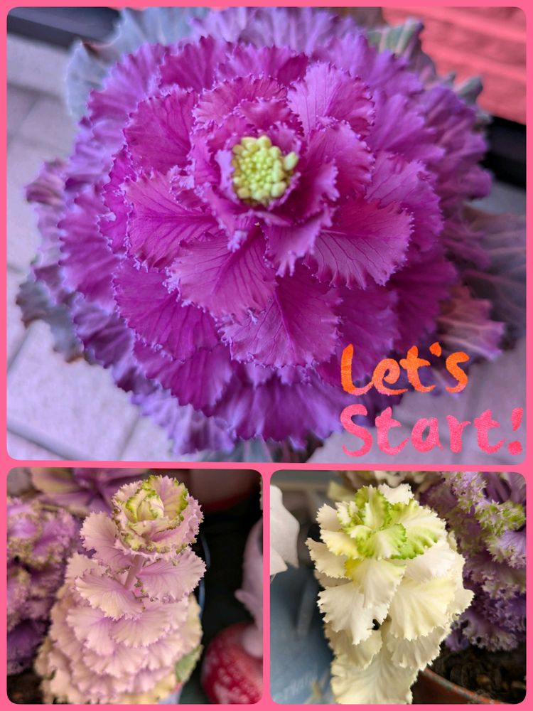 ⬆️玄関フードで越冬させたハボタンに塔が立ってきて、花芽も見える💗💜👀✨