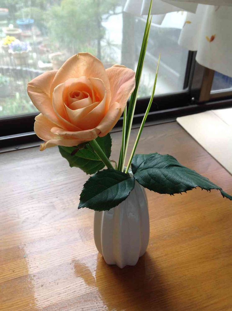 花器も 100円ショップのものですが、一輪挿しに ピッタリ。