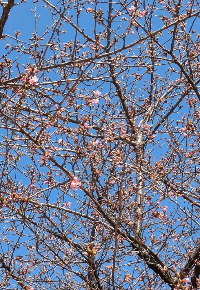 公園の桜の一部の木は蕾が少し開いて来ていました🌸