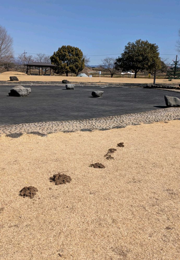 公園の芝生も春に浮かれたモグラが掘った跡が🕳🦡⸒⸒⸒⸒