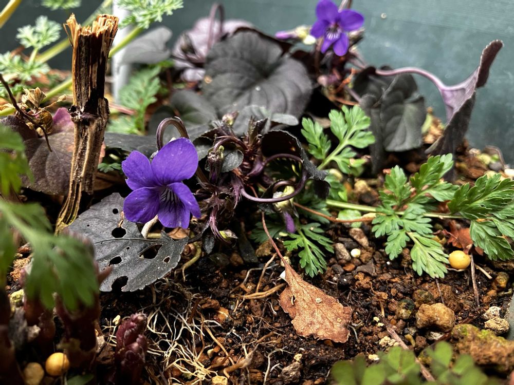 ④クレマチスさんの鉢でラブラドリカさんが咲いていました💜