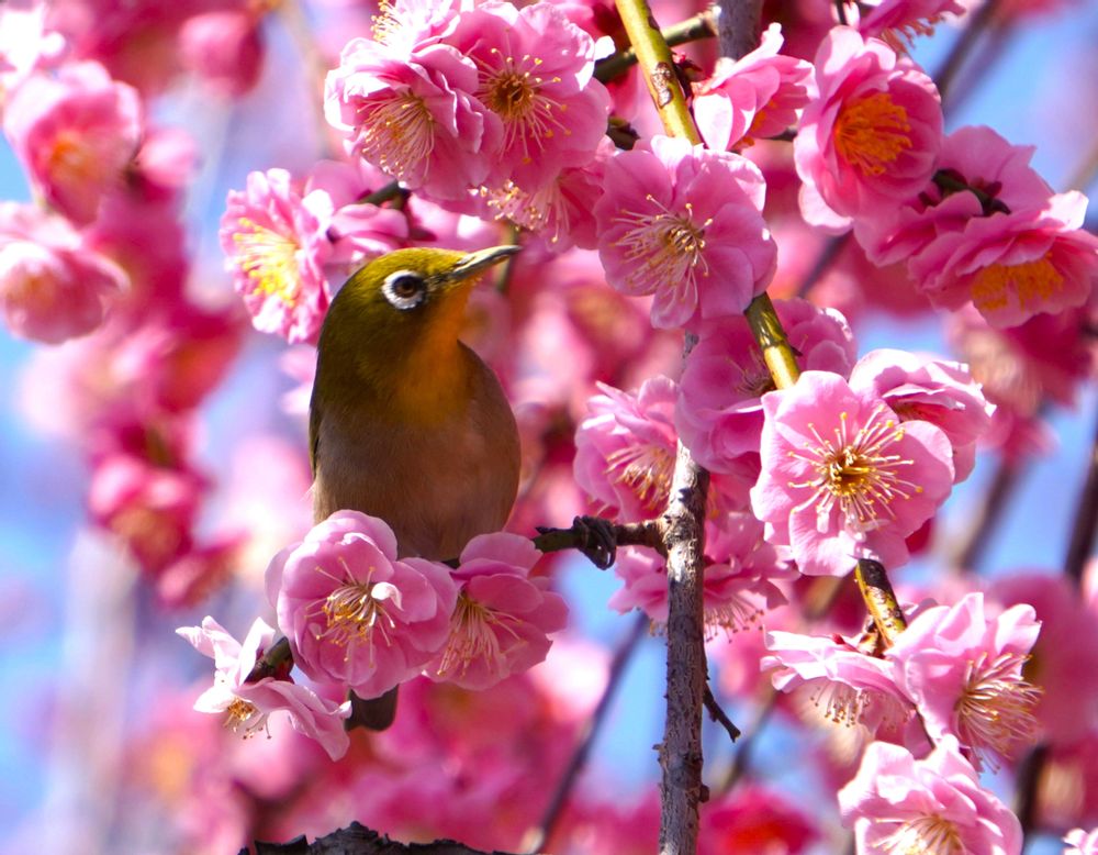 こっちの梅 まだ五分咲きくらいだから、ちらっとしかいないよ…😥