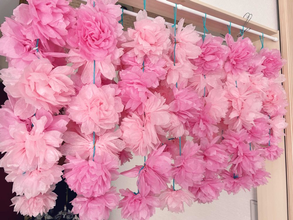 紫のお花紙もあったので、今度は藤に見立てて作っても良いかも〜と思ってます😊