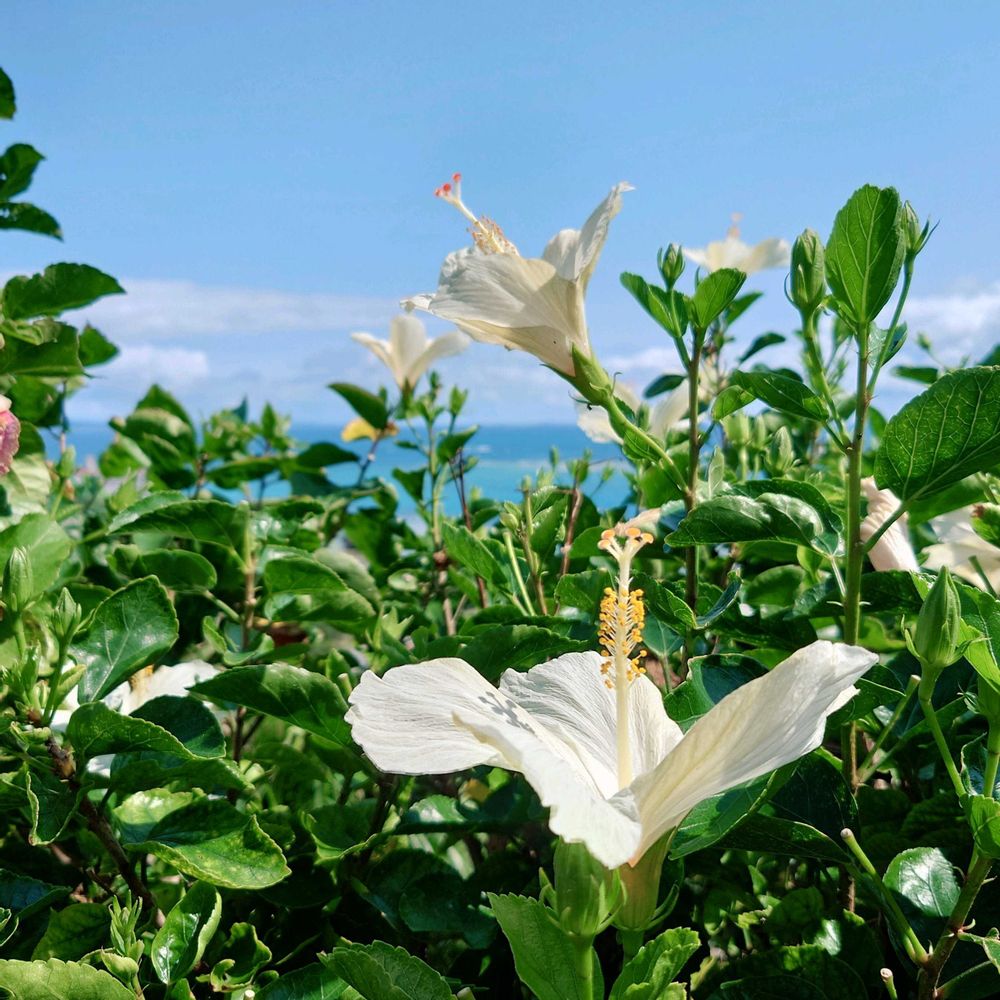 なんとも爽やかな景色と爽やかなハイビスカス🤍