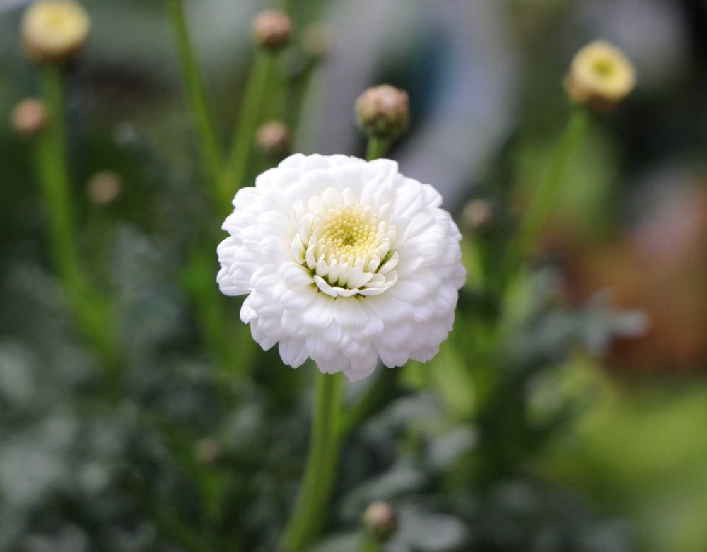ふんわり八重咲きの白花が魅力💐 四季咲き性で、真夏や真冬もぽつぽつ咲き続ける♪ 寄せ植えや花壇にぴったり!