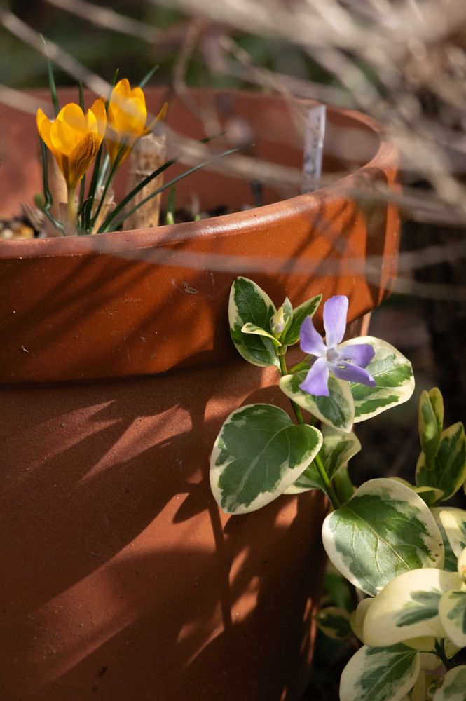 クロッカスとツルニチニチソウ