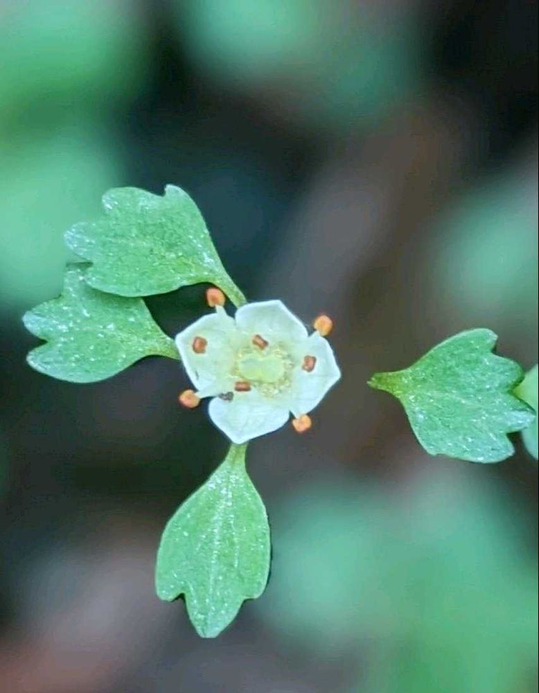 ①②ネコノメソウの仲間で白い花弁に赤い蕊が美しい🌿🤍🔴🤍🌿
