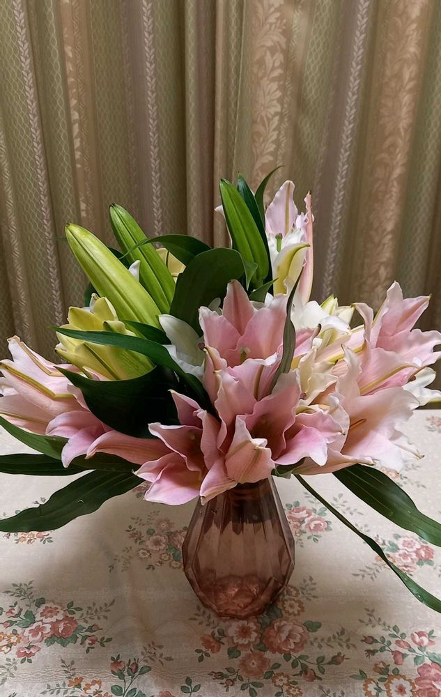 高知のご実家の近くにオリエンタルユリの花農家さんがいらっしゃるとかで、届いたばかりのお花を持ってきてくださいました。感謝、感謝です。🙇