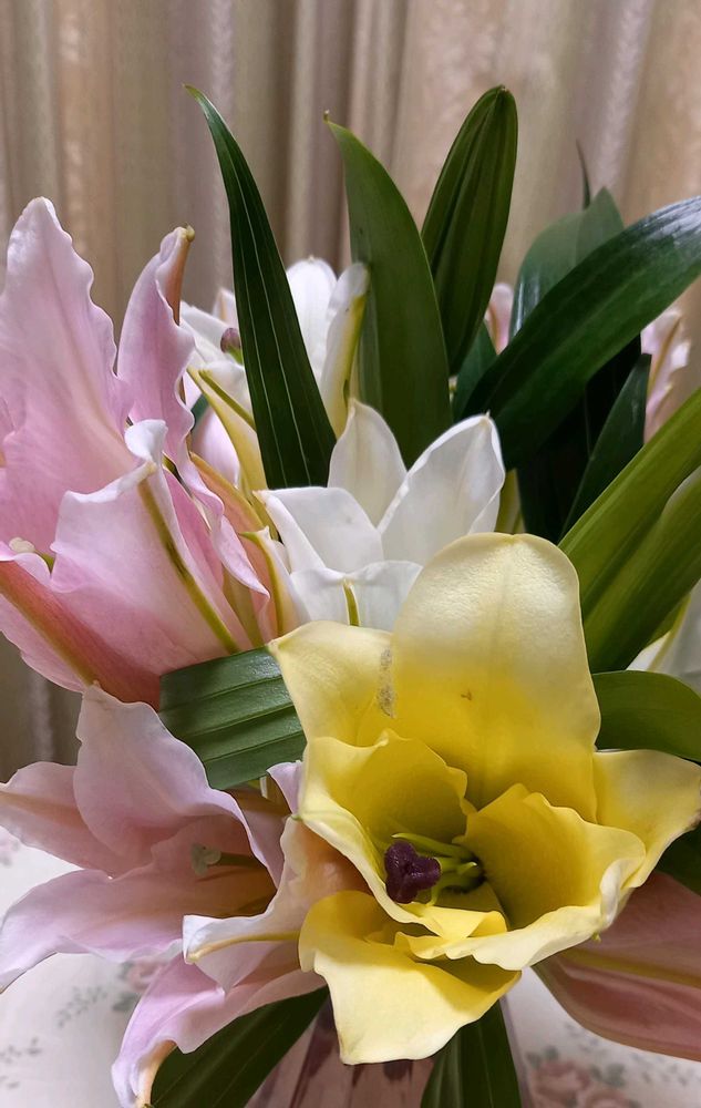 いただいた💐には白とピンクと黄色も入っていて華やか~。🌸🌟