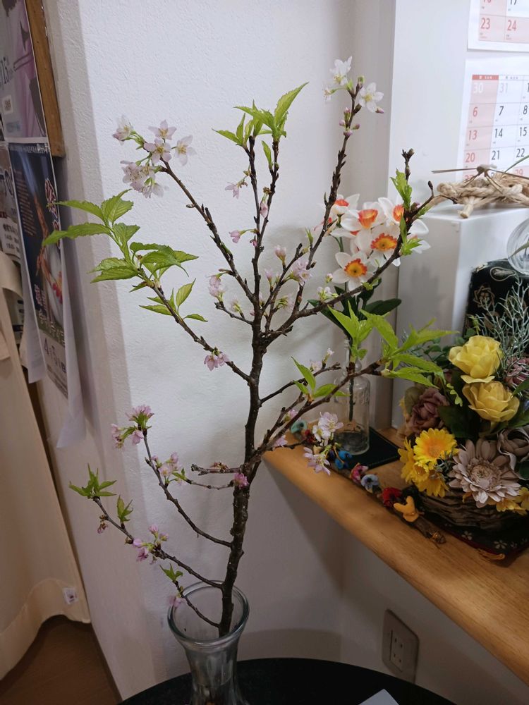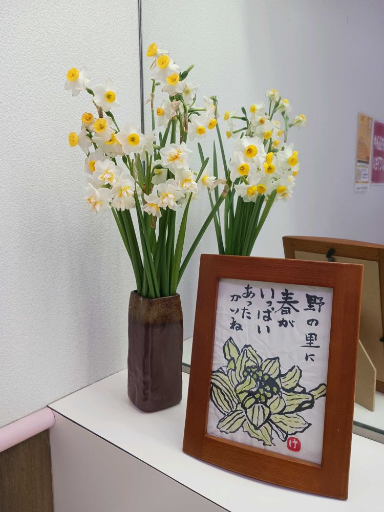 ①母のお世話になっている施設の受付に飾っている梅が咲き始めていました。Googleカメラで調べたらマメザクラでした。②久しぶりにイオンのトイレに名言と共に飾っているお花です。ネコヤナギを期待して行きましたが今日も水仙でした。ちょっと期待し過ぎました。次回はネコヤナギあるかなぁ🤔