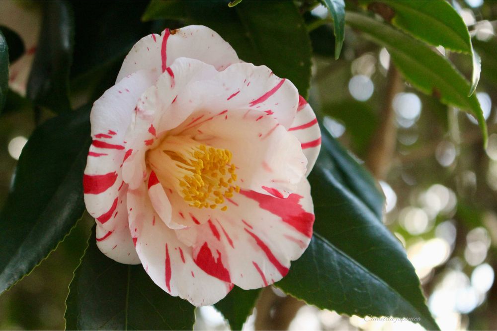 ※園芸品種(日本原産の椿(ツバキ)を基に約6,000種類の品種が生まれ、一重、八重、千重咲き、絞りなどさまざまな花形がある)