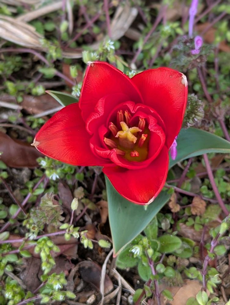 歩道側に小さな小さなチューリップが顔を出していました❤️