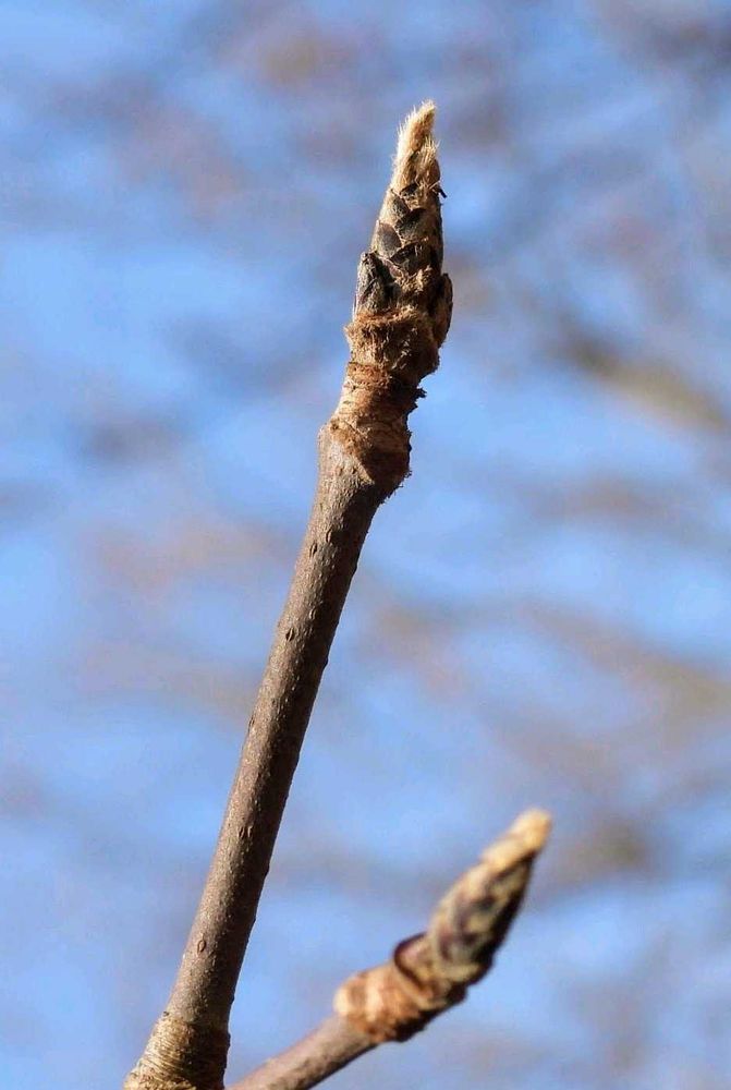 1️⃣2️⃣メグスリノキの冬芽が青空に向かって伸びています🌱