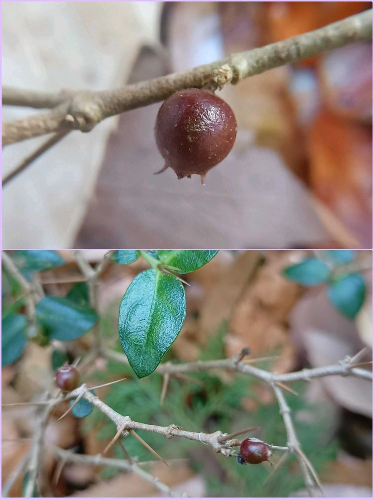 関東以西の本州、四国、九州及び沖縄に自生するアカネ科の常緑低木で、暖地の常緑樹林に多い。葉の付け根に長いトゲがあるのが特徴で、このトゲが小さな蟻をも刺し通すとして「蟻通し」と名付けられたそうです。日本固有種ではなく韓国や東南アジアにも分布します。