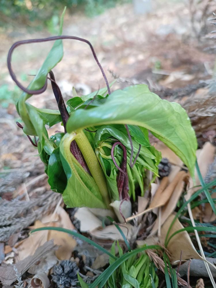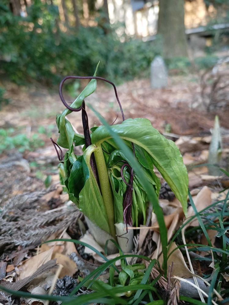なんとなくヘビを連想させる(私的に)植物は苦手なんですが、このウラシマソウを、咲いてる時に良く見たら、とても素敵に凛と咲いててファンになりました👍️