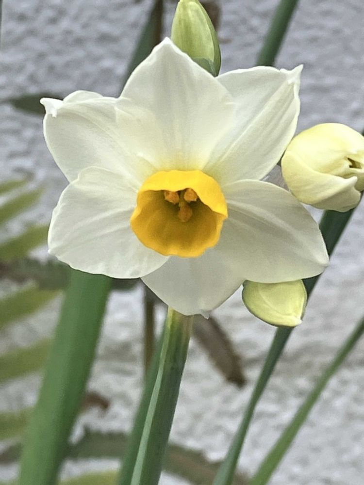 近くのお家の花壇の日本水仙が、ようやく咲きました🤍💛