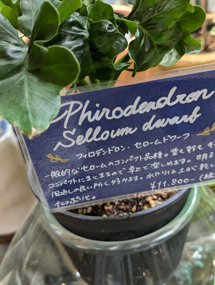 ①②観葉植物のお店で撮影の「フィロデンドロンセロームドワーフ」