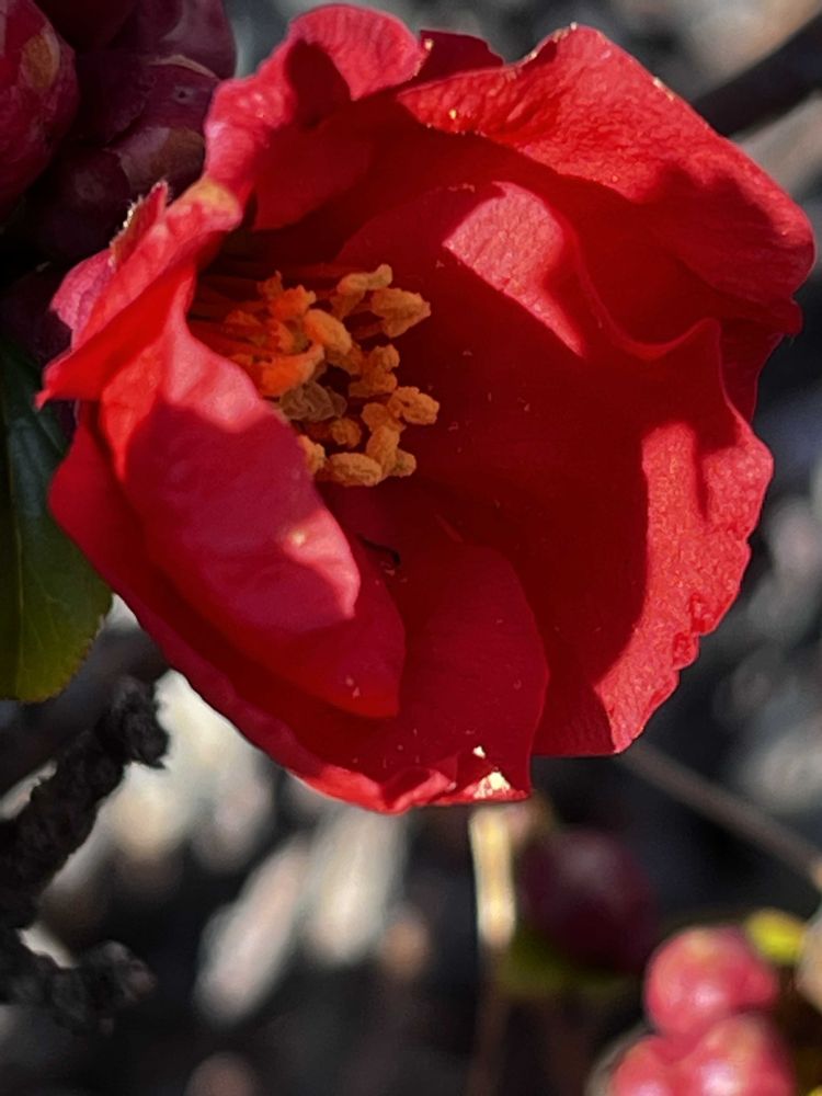 梅の紅も ずいぶん紅いと思っていたけれど このボケは 真っ赤😡ですね〜