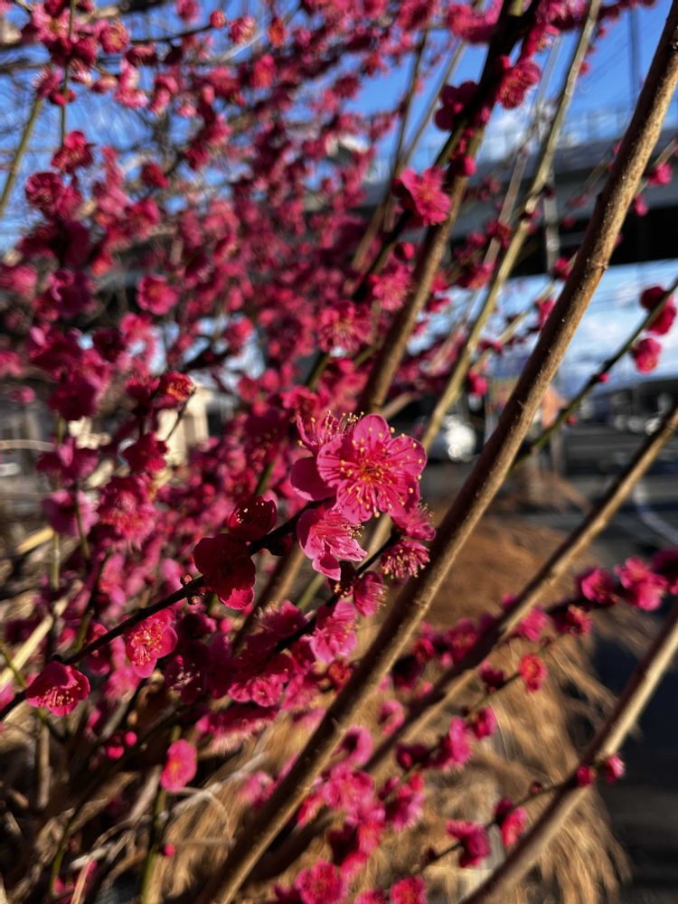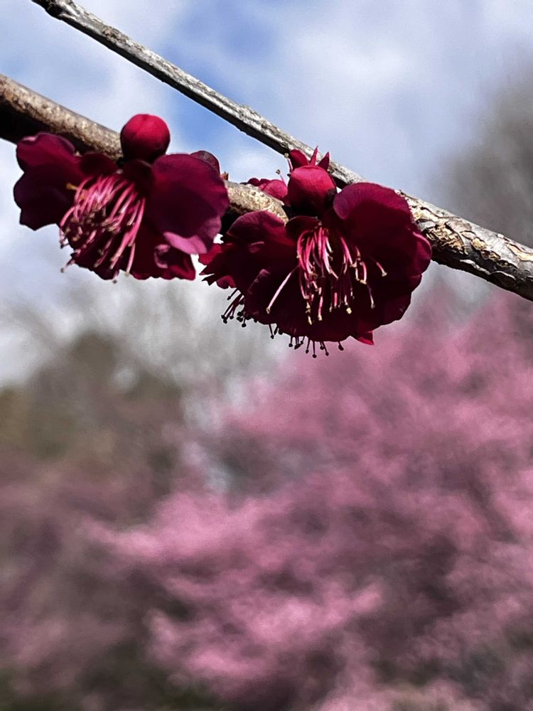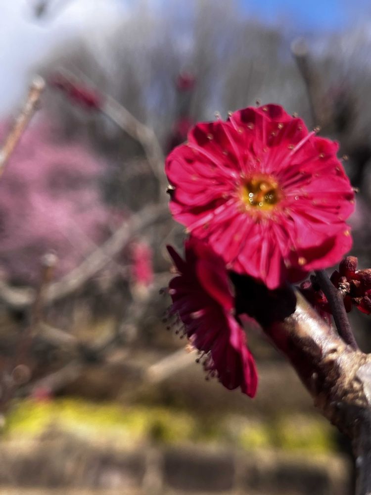 同じ 赤でも梅の 赤さより深紅の ボケの赤さが 際立ちますね😲