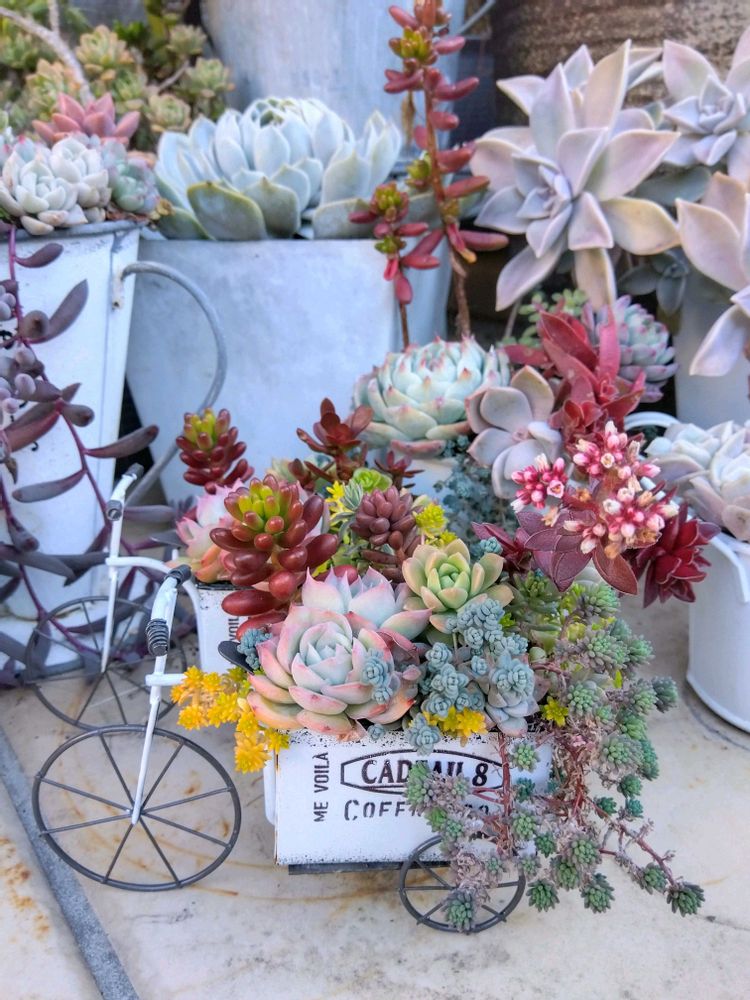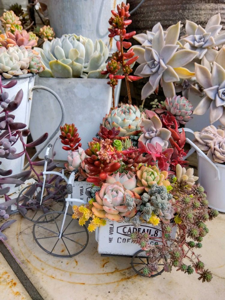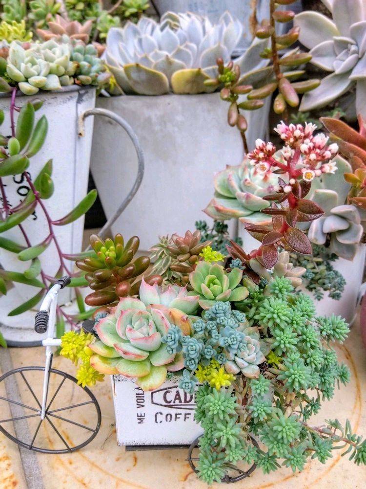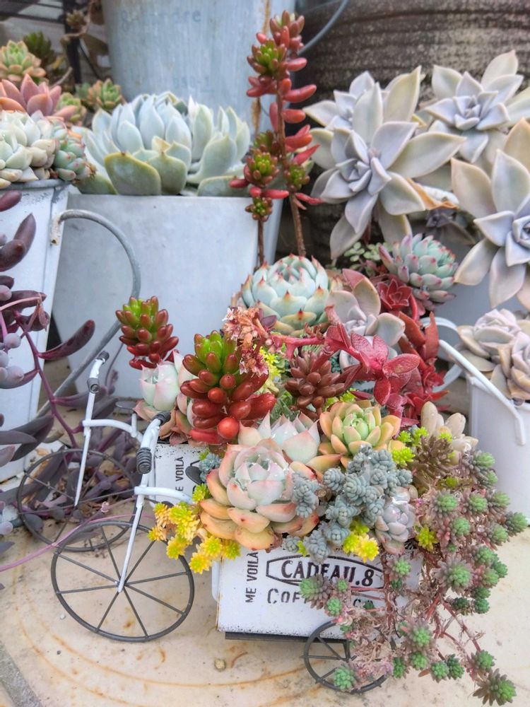 とても小さな自転車型の鉢に寄せ植えをしてから、半年余りが過ぎました。