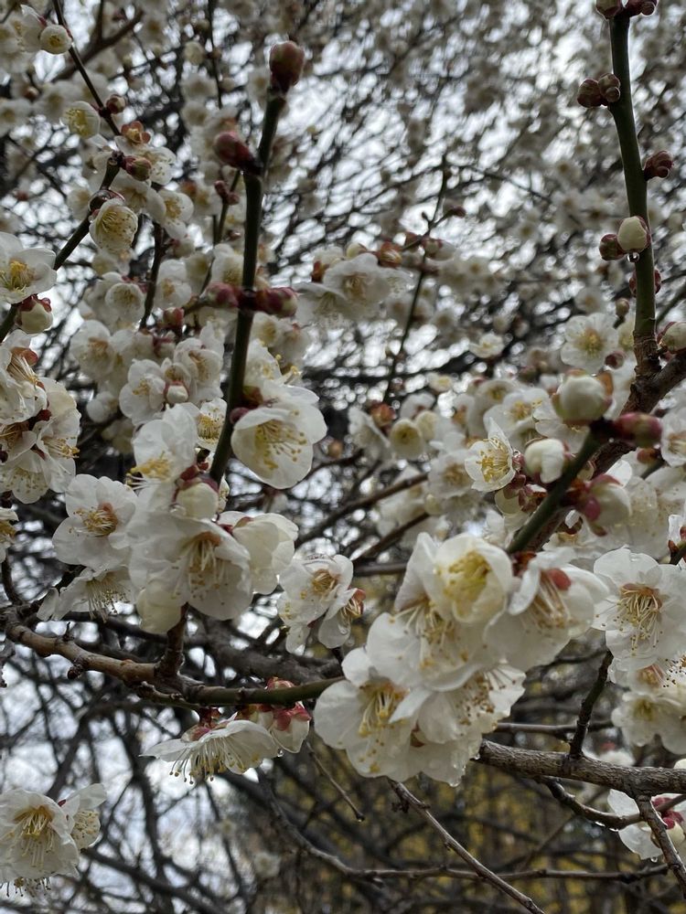 サンシュユと白梅が思いきり咲いています💛🤍💛🤍💛