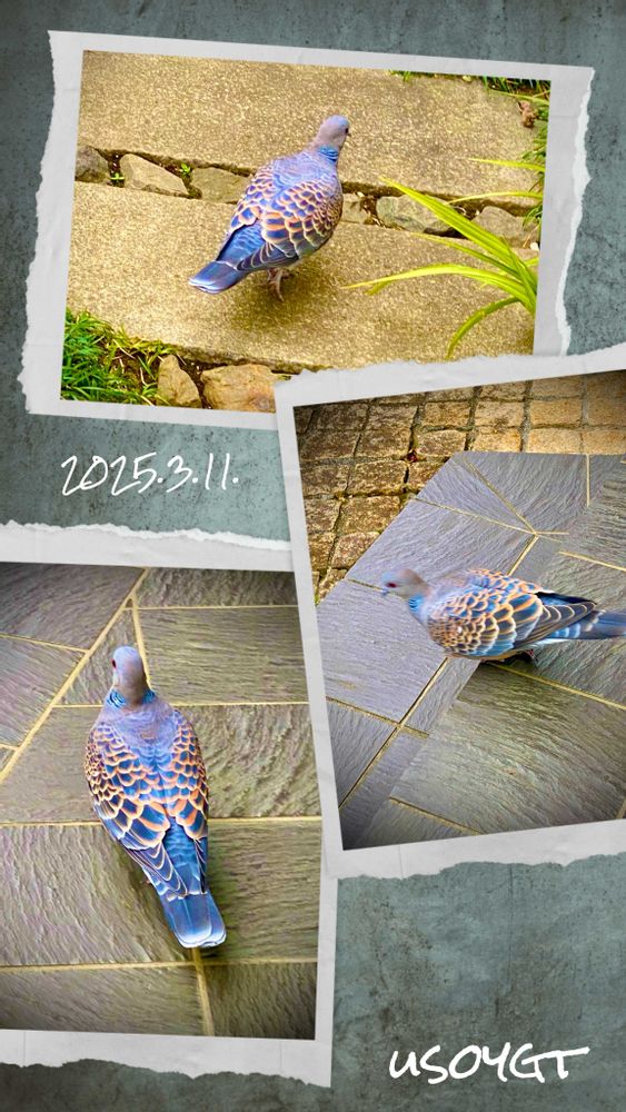 今朝、平和の象徴…「鳩」が我が家の玄関アプローチに飛来🤗(番外編)今日、東日本大地震から14年、鎮魂の祈りを捧げます🤗🙏