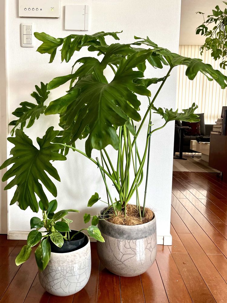 リビングは2階にあり、床暖があるせいか、すくすくフィロデンドロンは成長続けています