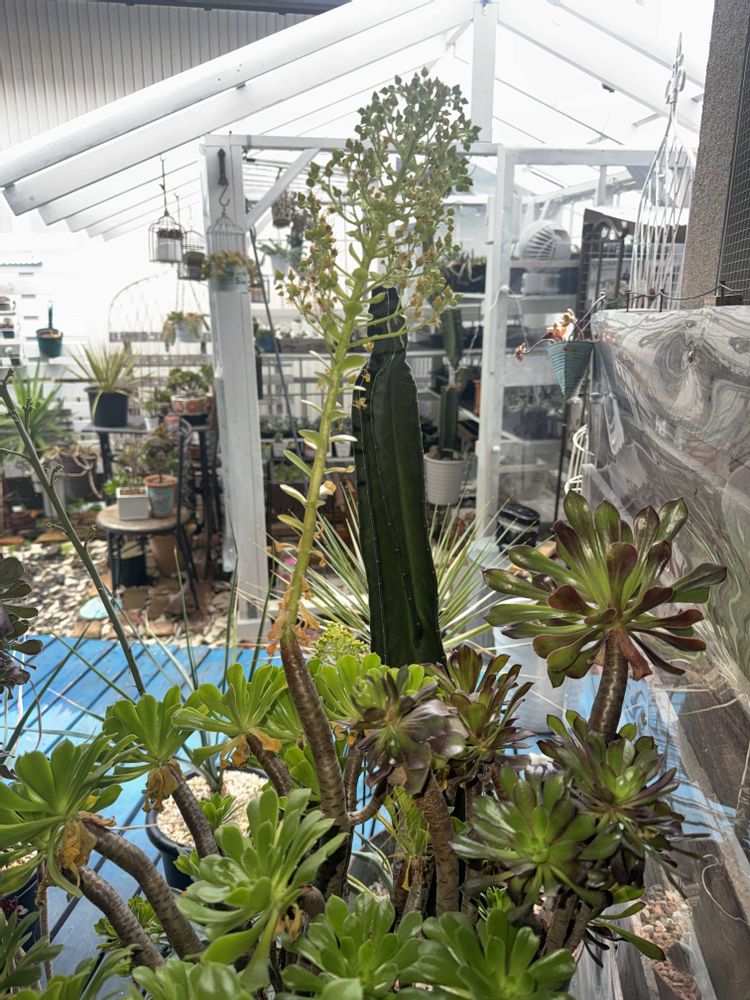 私はお花を楽しみ、満開すぎてからカットして花瓶に。カットしたアエオニウムは、脇芽が出て年々大きくなります。枯れないので、心配はありません。