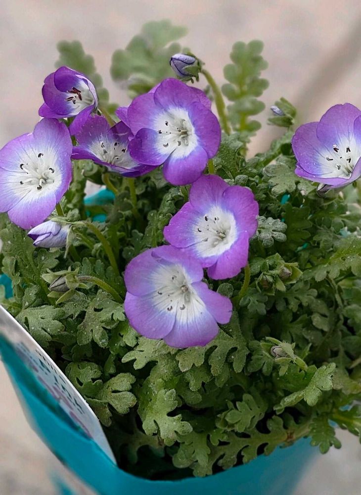 ネモフィラ、大好きなんですけどいつもだらしない感じになってしまうので買わないようにしていたんですがこのネモフィラはすぐかごに入れました♪♪ 早く植え替えた〜い!