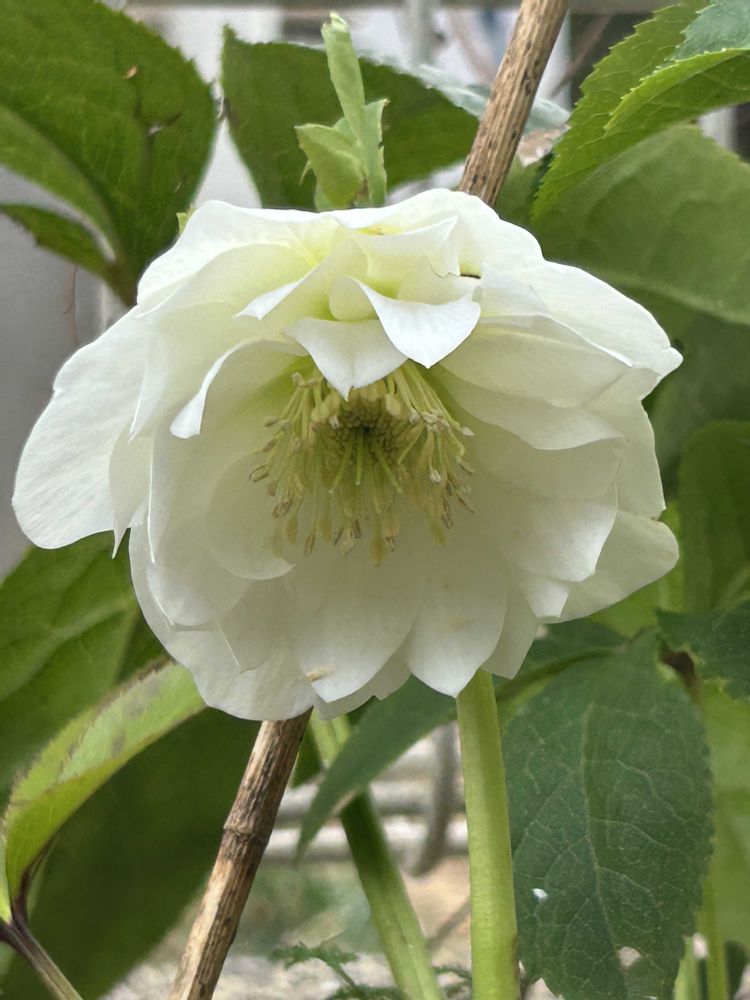 ①八重のクリスマスローズが3年目でやっと咲きました。小さなポットの苗を植えたので、我が家のニューーフェイス。