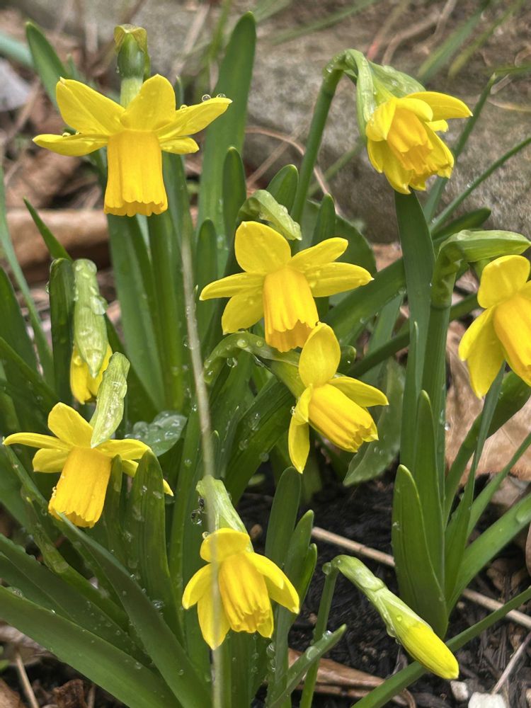 ③ミニのラッパズイセンも、黄色い蕾が膨らんできました。