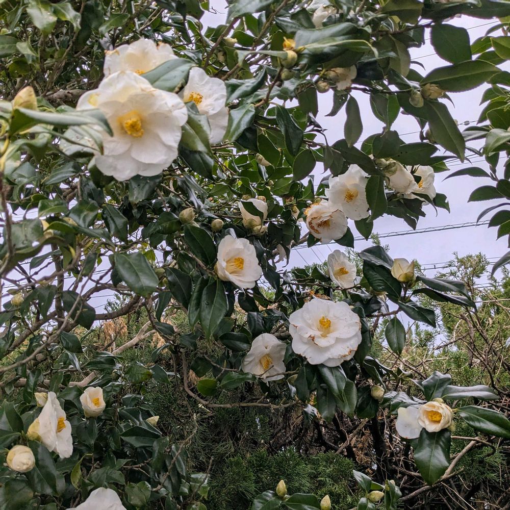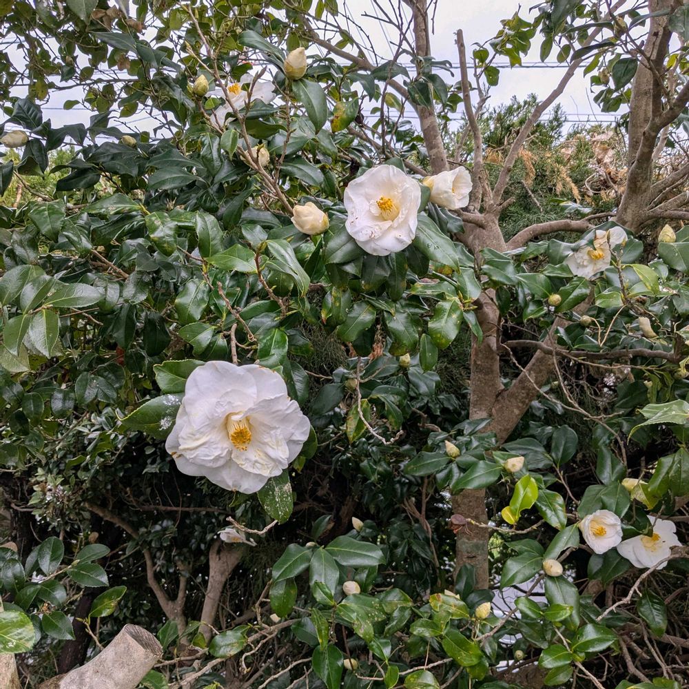 椿…我が家の庭に、ひっそり咲いていました😄白い色は、それなりに、清楚で、いいですね😄
