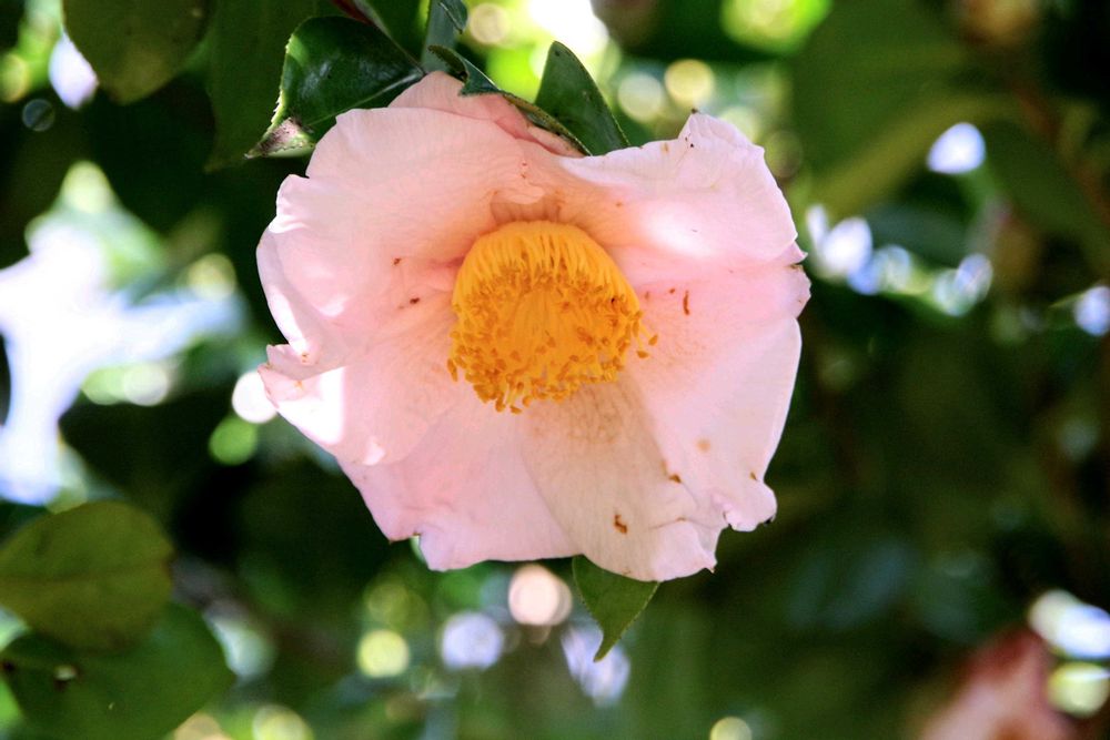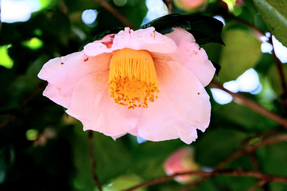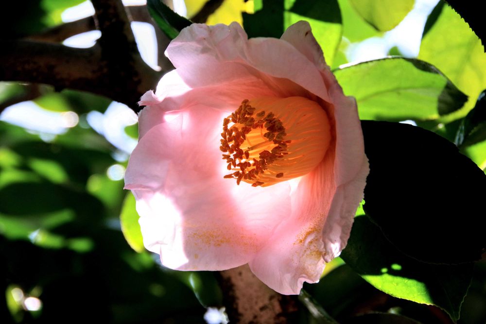 この椿は「曙」と名付けられていて、茶席にも使われ「あけぼのつばき」と呼ばれています