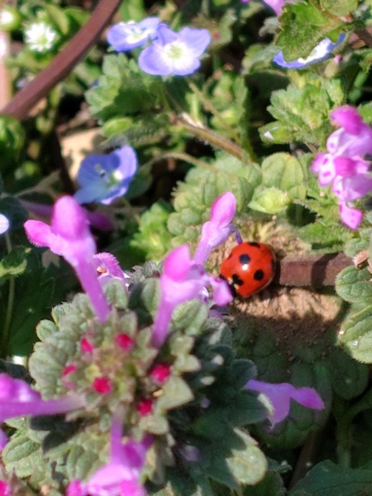 散歩コースで見かけた可愛らしい草花とてんとう虫です。