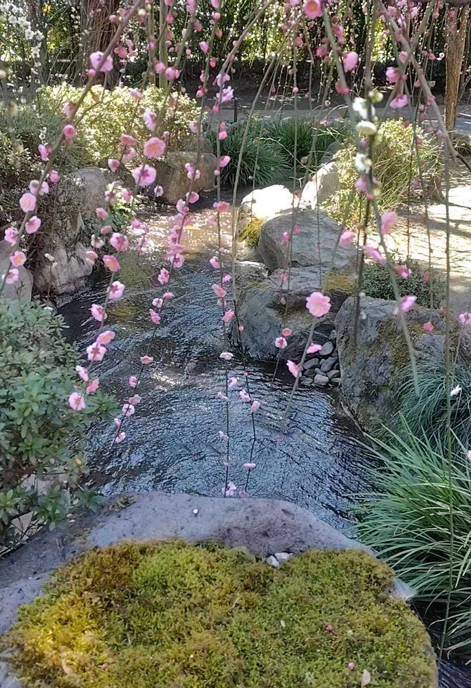 しだれ梅と椿が見頃を迎えています。