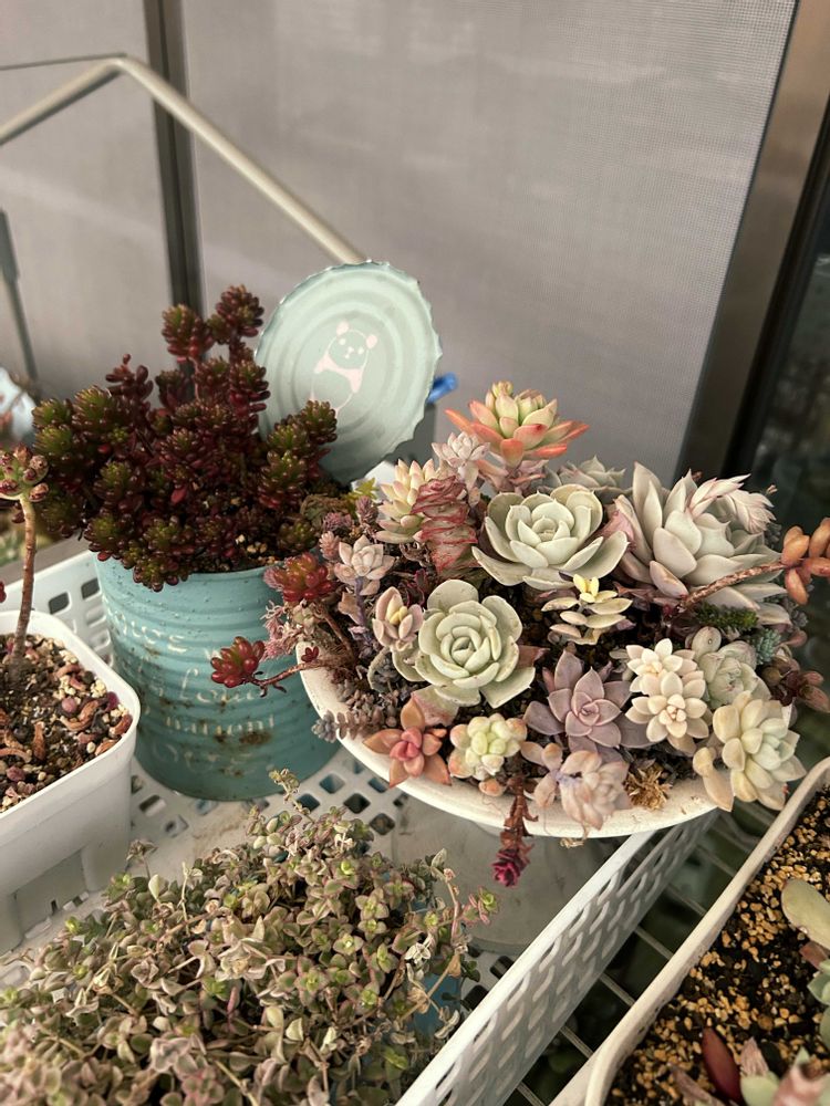 まだ寝室に居るクラッスラ、カランコエ系や実家の金のなる木、クジャクサボテンや黒法師とか…ベランダ…いっぱい🈵で置けないよ😅