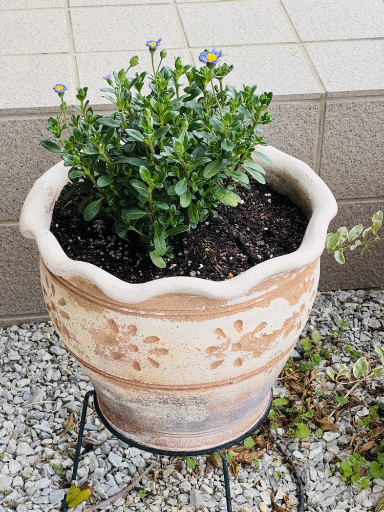 ブルーデイジーだけの鉢植えも植えました🌱