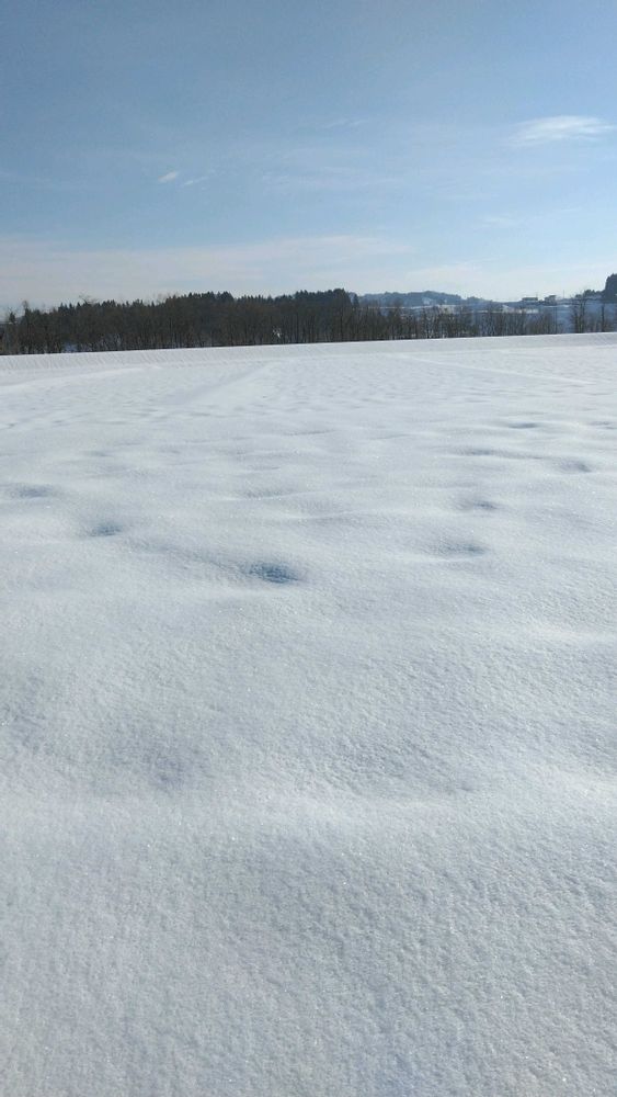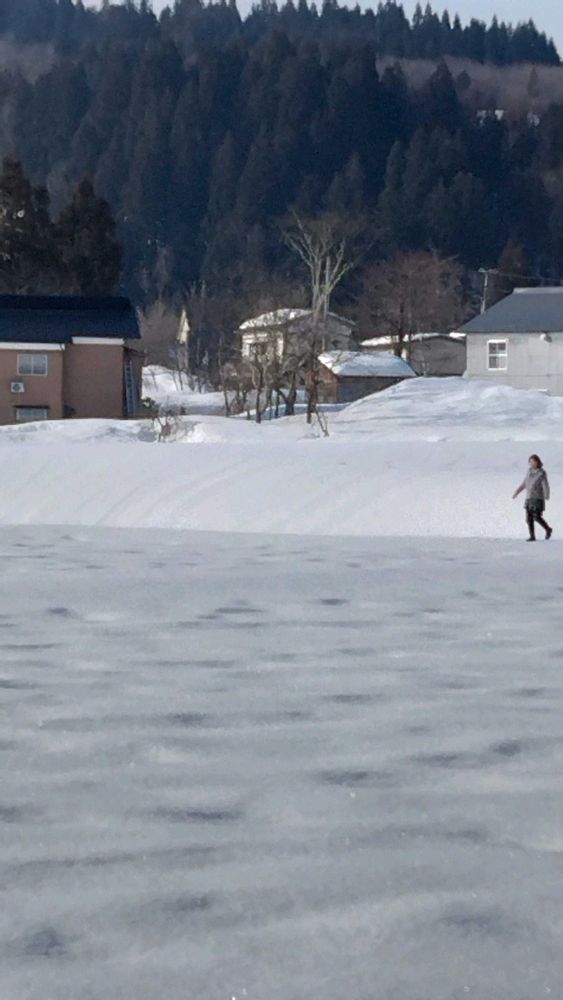 ゴミ出し帰り雪が凍って居たので、雪の上を凍み渡りしていたらご近所さんも出て来たので、二人で雪の上をお散歩して来ました🚶♀🎵🎶