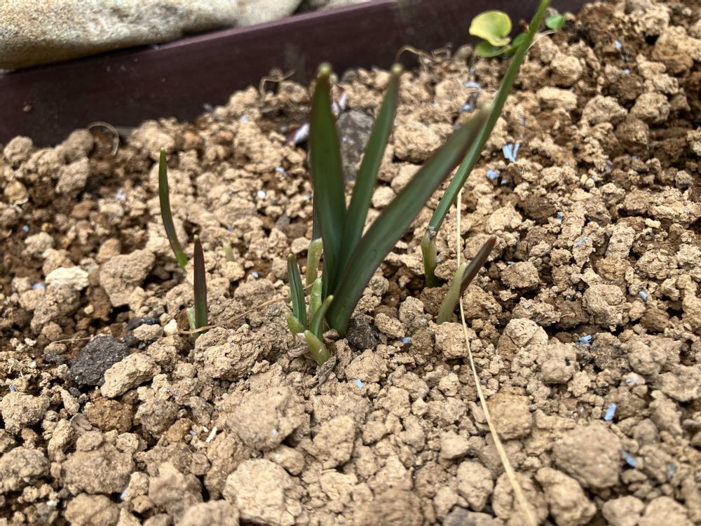 なんだか植えた記憶がない所からも球根っぽい芽が出てきました。