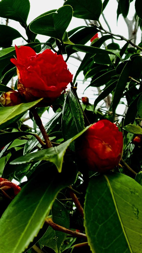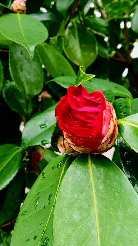 散歩道(京都丹波亀岡 南郷公園)の変わり椿、唐子椿の蕾が膨らんで来ました。
