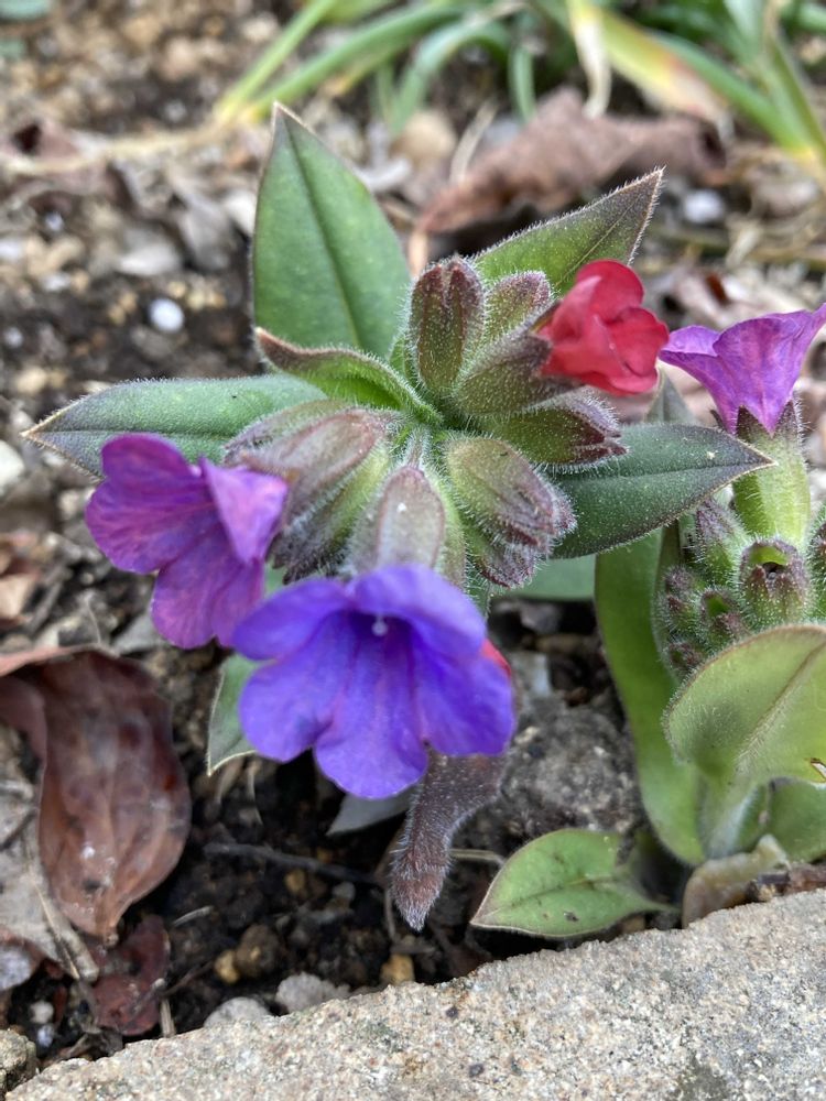 花壇の片隅で「春が来たよ」と教えてくれているみたい💜🩷♥️