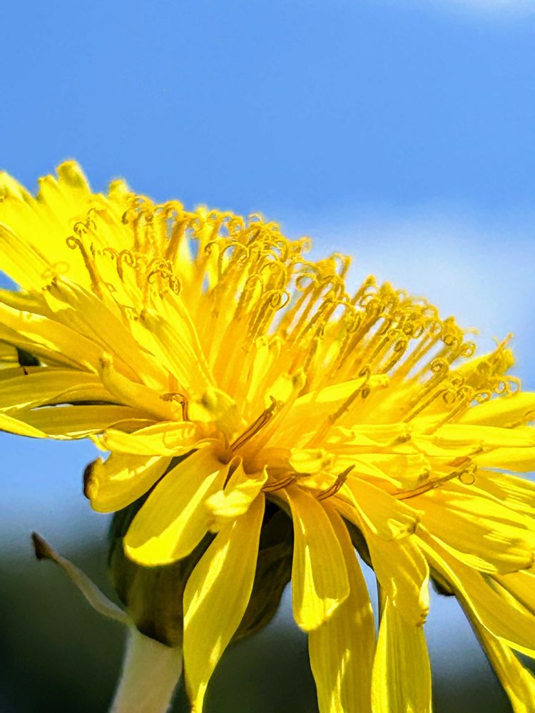 暖かい日射しを浴びながら、青空に向かって羽ばたく様に輝く、日本タンポポの華やぎ素敵だなぁ~🎵✌️