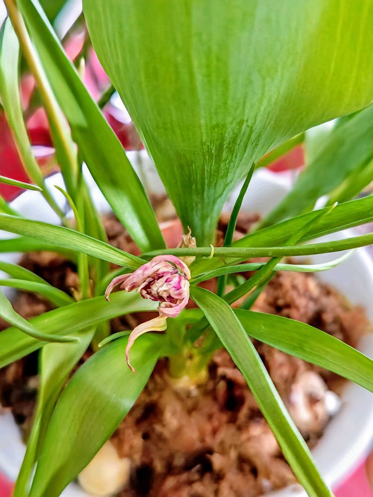 3枚め、プランター植えの原種チューリップ🌷サマンサの蕾は順調。水栽培もこの位までは順調だった。油断大敵、気を引き締めて💪。