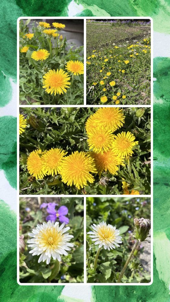 1枚目のコラージュ写真は、昨年の春いつもの散歩道で撮影しました😆👍🚶🌼🌼 シロバナタンポポも有りました😆👍✨🤍 今年はまだシロバナタンポポは咲いていないです😀👍