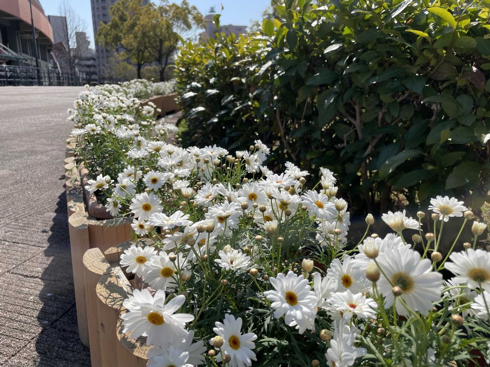 花壇にズラ〜っと。白いマーガレットって清楚!🤍