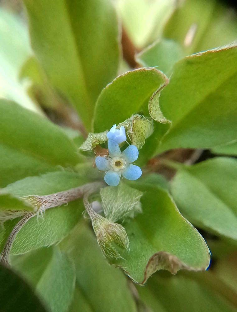 同じ場所に咲いてるのに大きさが一回り小さく、完全に開ききってなく、色も少し違う水色🩵🌿