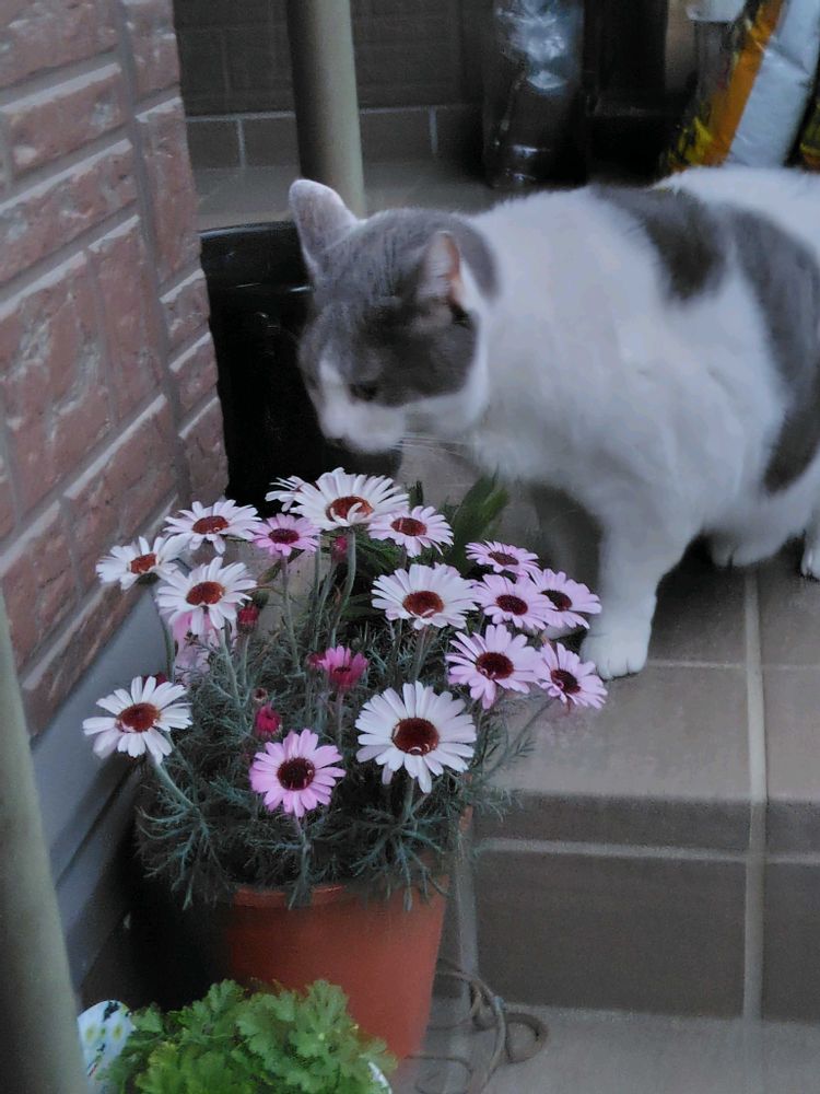 お花の後ろに猫草があるのでカジカジしてました😸🐾