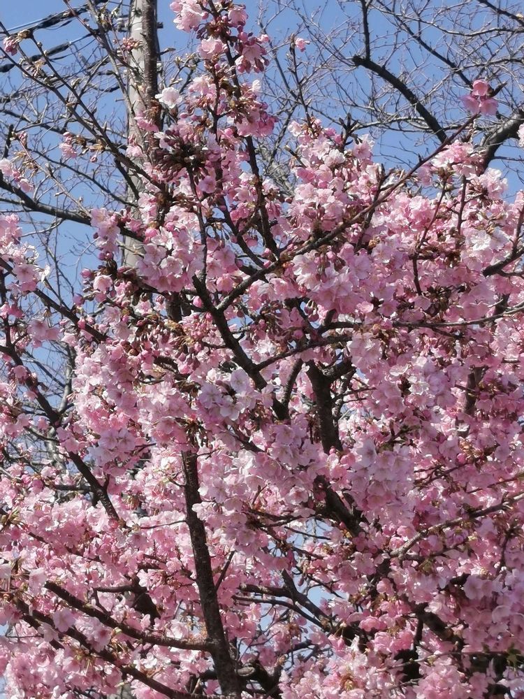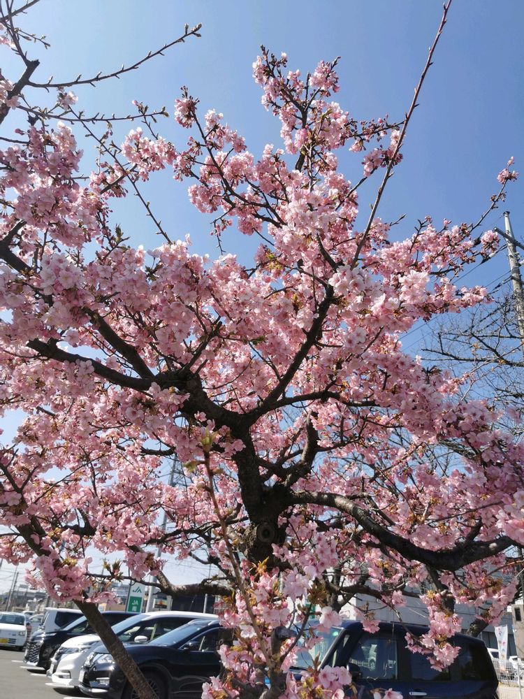 地元の駐車場にある1本のカワヅザクラも満開になっていました。🌸🌸🌸