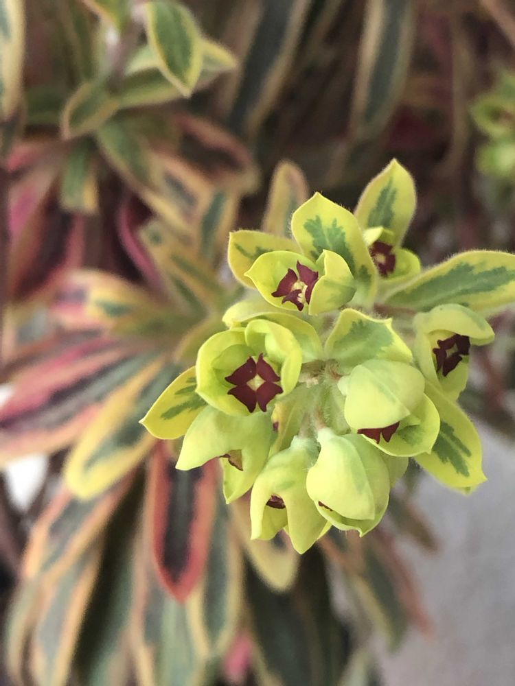 待ってました❣️春の到来🏷️2のつく日は斑入りの日🌿✨🌿ユーフォルビア・ゴールデンレインボー🌈咲きました🌼➡️🪴